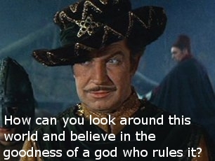 | Prince Prospero from the horror film “The Masque of the Red Death” hints at the problem of evil. |