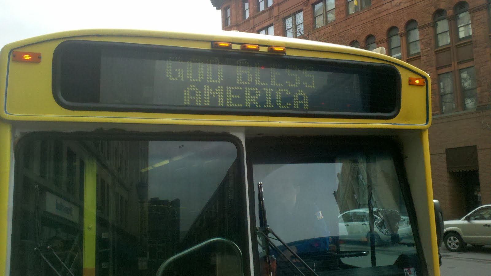 The COLTS drivers are no longer allowed to put “God Bless America” on the head signs of the buses because of this. We have been proudly advertising this for years and we should still be able to show this on the bus.